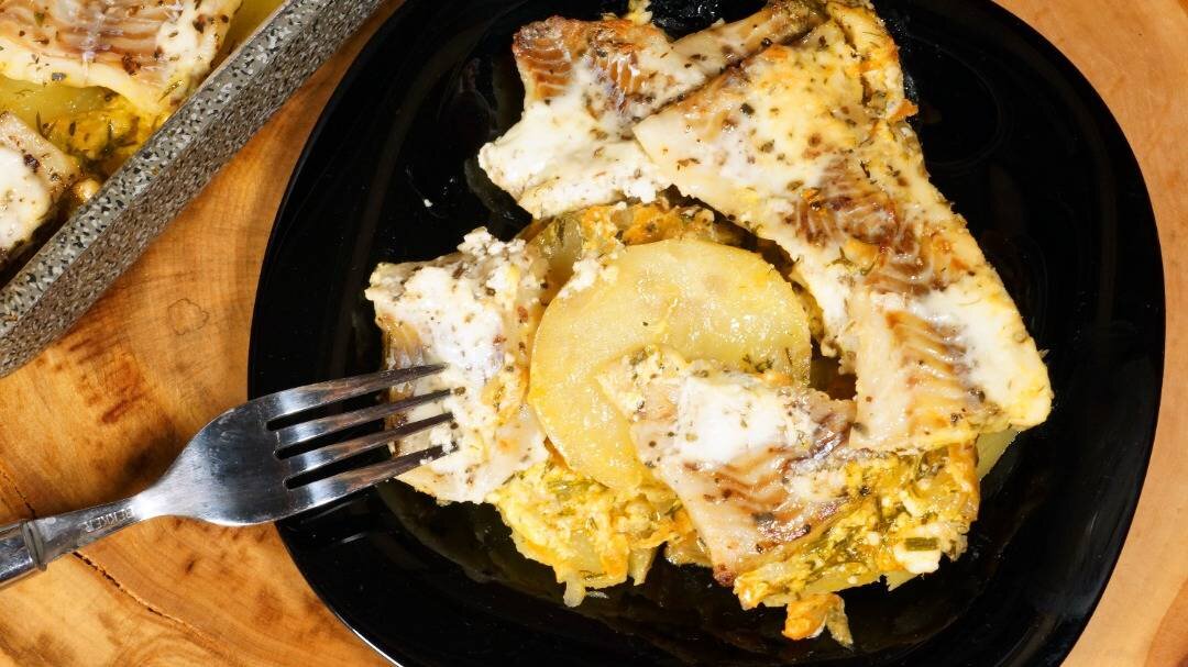 Сочная и ароматная рыба, в духовке с картофелем, пассеровкой в сметане прекрасно подойдет как к обеденному столу, так и калорийному семейному ужину. Ингредиенты: Рыба (филе окуня) , Картофель, Морковь , Лук , Укроп , Сметана , Орегано , Масло растительное , Соль, молотый черный перец Способ приготовления: Подготовить все ингредиенты. Рыбу очистить, промыть, удалить лишние внутренние части и плавники. Порезать на кусочки. Добавить по вкусу соль, перец и орегано. Перемешать и оставить на маринование на 30 минут. Лук очистить, порезать мелко. Морковь натереть на крупной тёрке. Обжарить на растительном масле лук, к нему добавить морковь для пассерования до прозрачного лука. Картофель нарезать кружками, укроп мелко порезать, всыпать в картофель, добавить обжаренные овощи, соль, 2/3 сметаны и перемешать. В противень выложить пергамент, ровным слоем выложить картофель, поверх кусочки рыбы. Закрыть блюдо фольгой и отправить в разогретую до 180 С духовку на 45-55 минут. Ориентируйтесь по своей