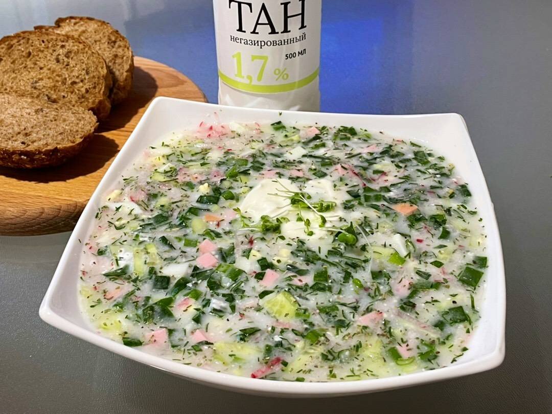 #летнееменю Ингредиенты: Айран (Тан) негазированный, Картофель, Яйца варёные, Колбаса или 2 шт Сосиски молочные, Лук зелёный , Укроп , Петрушка , Прованские травы, Огурцы свежие, Редиска Способ приготовления: Картошку и яйца сварить заранее. Зелень промыть под проточной водой. Нарезать мелко, выложить в глубокую миску кастрюлю. Добавить щепотку соли, размять ложкой. Так зелень даст больше сока и окрошка получится очень ароматной. Яйца варёные нарезать кубиками. Колбасу или сосиски нарезать на небольшие кубики. Огурцы и редис помыть, мелко порезать. При желании воспользуйтесь тёркой. Все подготовленные ингредиенты для окрошки выложить в миску к зелени. Всыпать прованские травы, залить айраном. Перемешать, проверить на соль, добавить молотый чёрный перец, поставить в холодильник на 30 минут. Подавать к столу в глубоких тарелках. По желанию добавить ложку сметаны.