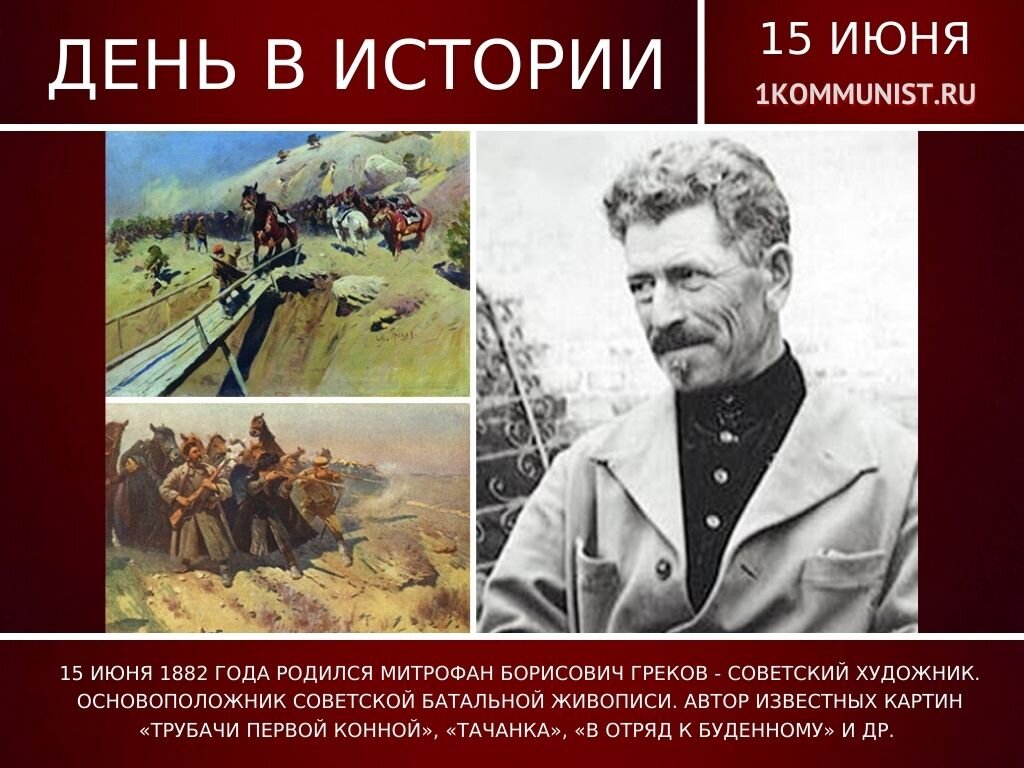 15 июня 1882 года родился Митрофан Борисович Греков - советский художник. Основоположник советской батальной живописи.