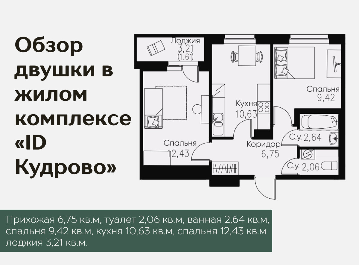 Сегодня на обзоре у нас двухкомнатная квартира в ЖК "ID Кудрово"