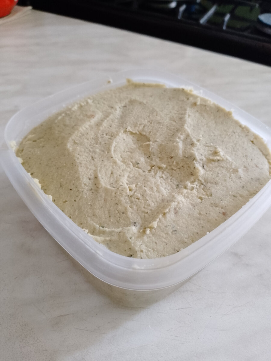 Сегодня хочу поделиться еще одной версией домашней "намазки". Недавно распробовала я хумус, пару раз брала в магазине и мне очень понравилось. Решила попробовать сделать свою версию. Получилось вкусно, поэтому решила поделиться и с вами. Сразу скажу, что это не 100% хумус как в магазинах, т.к. в его состав входит кунжутная паста. У меня такой не было и решила попробовать без неё. Что нам потребуется: Самое длительное в рецепте - это приготовление нута. Его нужно предварительно замочить часов на 8. Я это делаю на ночь. Затем воду слить, промыть нут, залить новой водой и сварить( это по времени занимает 1-1,5 часа, всё зависит от размера). Крупный нут будет вариться дольше, мелкий быстрее. Я бы даже больше советовала брать мелкий, стоит он значительно дешевле, сварится быстрее и блендер проще с ним справится. А далее, когда нут сварился, отправляем его в блендер, добавляем растительное масло и специи. Масло в оригинале идет оливковое, но и с подсолнечным все хорошо получается. Мож