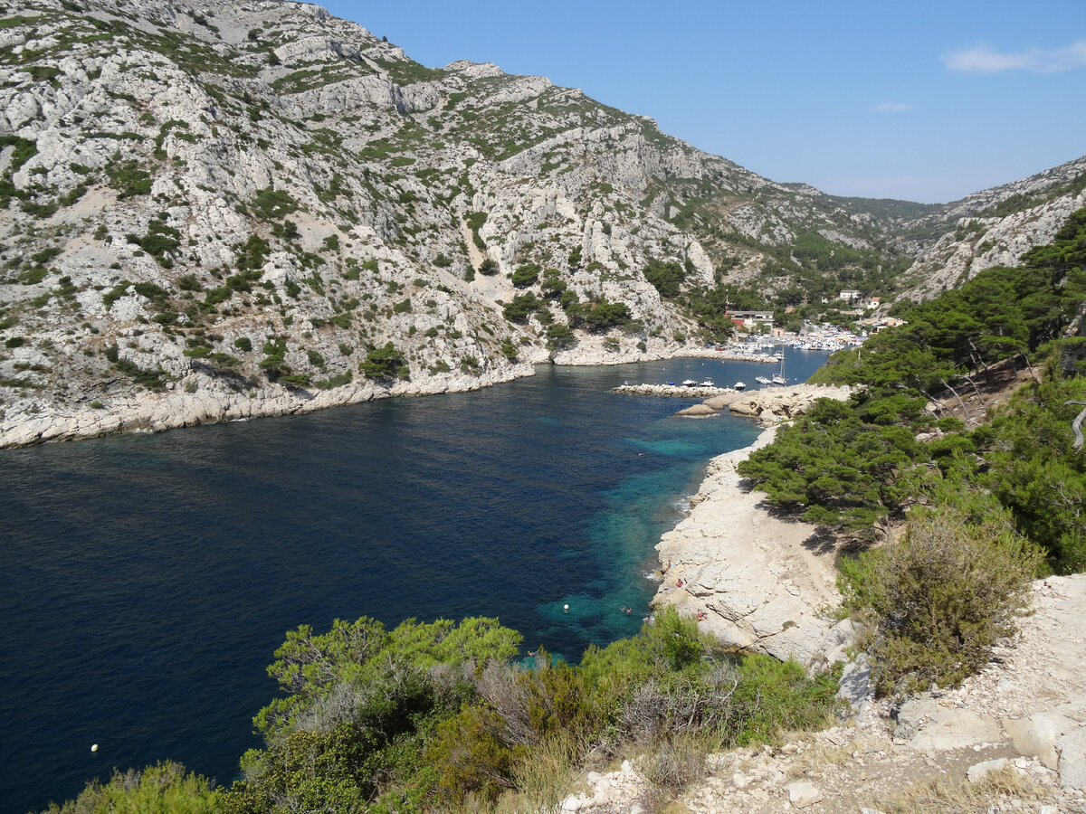 продолжение 8. Триумфальная арка Думаю многим она покажется знакомым, как раз по фильмам "Такси". 8. Нотр-Дам-де-ла-Гард Базилика, возвышающаяся над городом. Ее можно лицезреть из многих частей Марселя, даже из окна моего хоста, ее было прекрасно видно. 9. Совсем недалеко Каланки Каланки — это одна из главных достопримечательностей Прованса, с их великолепной природой и невероятной красоты пейзажами, которые называют провансальскими фьордами. Они разрезают побережье Франции от Марселя до Кассиса и Ла-Сьота Каланки представляют собой известняковые скалы высотой свыше 400 метров, сформировавшиеся около 120 миллионов лет назад. Уровень моря постепенно понижался, формируя живописные миниатюрные фьорды, напоминающие о древней долине, затопленной морем на высоту свыше 120 метров с последнего ледника. Есть очень много красивых лагун, но некоторые подходят только для плаванья с корабля. Я побывала в 2-х, о которых и расскажу ниже: 1. Calanque de Sugiton Зрелищная каланка, удобная для прогу