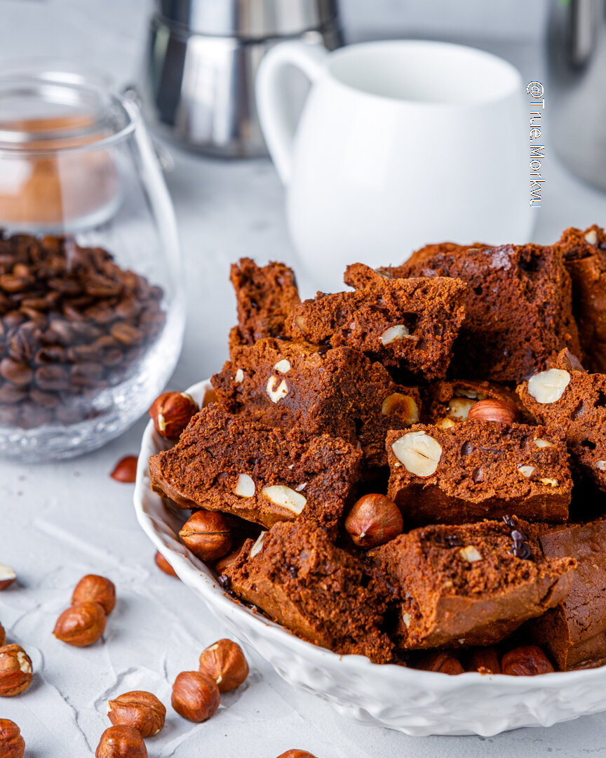 5️⃣Достаньте брауни из духовки, накройте полотенцем, дайте немного остыть и нарежьте на кубики.