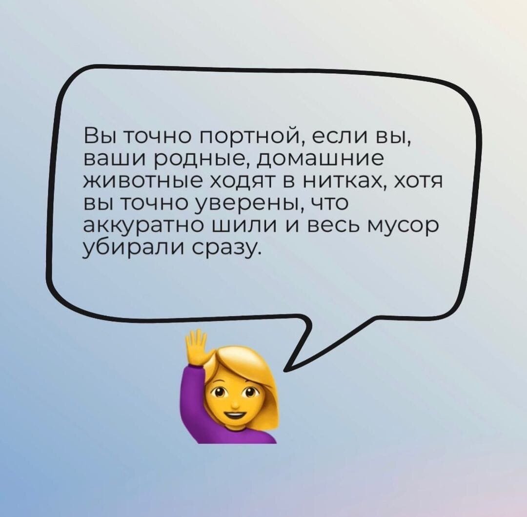 Сегодня я выделила несколько признаков, которые определяют, что ты портной. Читайте и пишите в комментариях сколько пунктов про вас?