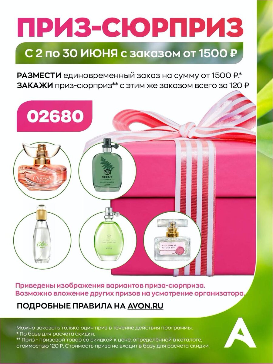 😍ПРОГРАММА ДЛЯ ВСЕХ ПРЕДСТАВИТЕЛЕЙ кроме участников программы «Легкий старт» LOA1-3 Условия: Размести единовременный заказ со 2 по 30 июня на сумму от 1 500₽* и более - закажи приз-сюрприз за 120₽ вместе с этим же заказом по коду 02680 ▫️В заказ будет вкладываться один из призовых продуктов на выбор компании. ▫️Можно заказать только один приз в течение действия программы. *По базе для расчета скидки