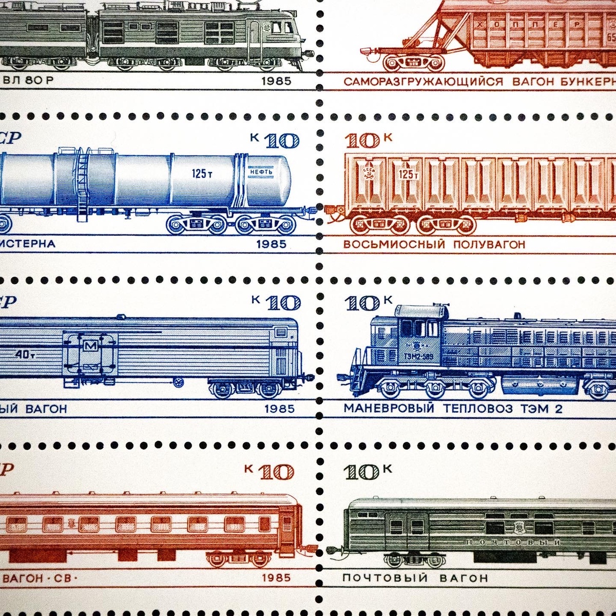 Железные дороги в СССР перевозили более 80% всех грузов страны и занимали второе место в мире по этому объему, после США. На марках: + электровоз ВЛ80Р + саморазгружающийся вагон бункерного типа + восьмиосная цистерна + восьмиосный полувагон + рефрижераторный вагон + маневровый тепловоз ТЭМ2 + пассажирский вагон СВ + почтовый вагон Союз Советских Социалистических Республик «Локомотивы и вагоны советских железных дорог» 1985 Цена: 79₽ Лот №z1638-1 Малый лист. Сохранность: чистая MNH Тираж: 7.000.000 Дата выпуска: 15 июня 1885 Загорский: 5568-5575 ЦФА/Соловьев: 5636-5643 Michel: 5515-5522 КСТАТИ, все последние материалы, отсортированные по странам и сериям, можно найти на моем сайте. Оплата: Сбербанк, Альфа-банк, Газпромбанк, Авангард и Тинькоф. Оплата строго в течении 5 рабочих дней. Возможна встреча на станции метро Волоколамская (Москва). Лоты можно объединять, копить и резервировать. ВНИМАНИЕ! ПРИ ПОКУПКЕ ОТ 5000 РУБЛЕЙ — ОПЛАЧУ ПОЛОВИНУ РАСХОДОВ НА ПОЧТУ! В 2021 году изменили
