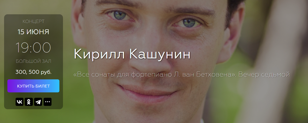 Друзья, ✅ 15 Июня 2022 в Медиацентре «Дом Скрябина» в Москве, состоится седьмой концерт цикла «Все сонаты для фортепиано Людвига ван Бетховена». Исполнитель – 🎹 пианист Кирилл Кашунин. Начало концерта в 19:00. Репертуар вечера: четыре Сонаты Людвига ван Бетховена Сонаты относятся к позднему периоду творчества композитора, отмеченному загадочностью содержания, необычностью форм и предельной сложностью музыкального языка. Эти очень разные сонаты объединяет еще и то, что почти все они, кроме № 28, написанной в 1816 году, сочинялись в расчете на виртуозные и выразительные возможности фортепиано нового типа – шестиоктавного концертного рояля английской фирмы John Broadwood & Sons, полученного Бетховеном в подарок от этой фирмы в 1818 году. В этих сонатах обретает новое дыхание и идея «сонаты-фантазии» со свободно устроенным циклом и прихотливым чередованием тем. Адрес проведения концерта: