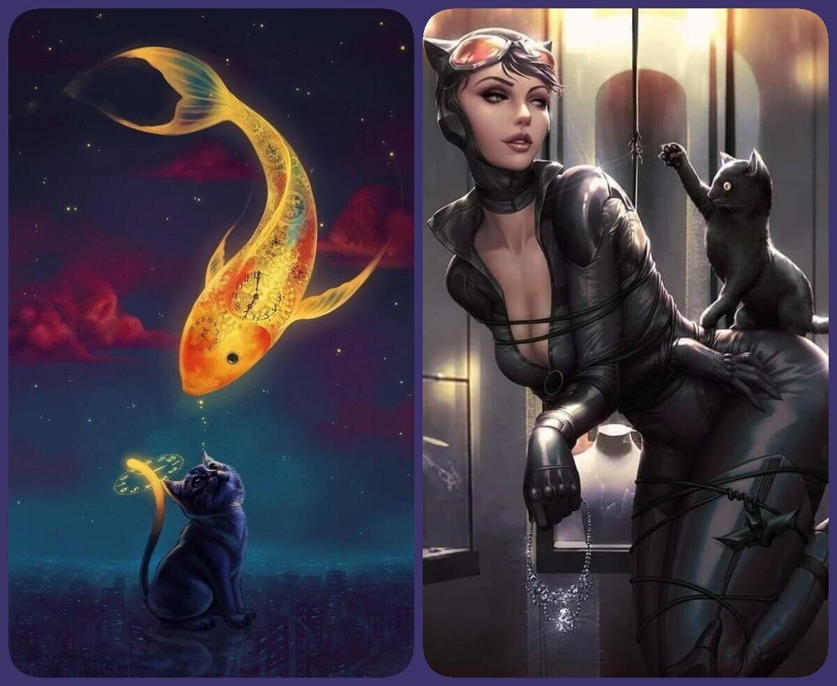 Сегодня день Петербургских котов ... Чёрная кошка... сказка для детей и взрослых ga-lucia Галинка Багрецова ****************** Чёрная кошка в ночи заблудилась, Зря я сегодня с утра не помылась. Ночь, как назло, тоже в чёрном пришла, Чтобы я дом свой совсем не нашла ... ****************** Буду молить я, наверное, Бога, Сделай ты ночь посветлее немного. Бог не ответил - другие дела, Кошка дорожкою тёмной пошла ... ****************** Плачет, рыдает, не видно дорожки. - Ой же, собью я на ней свои ножки, Только не знаю, кого и молить, Чтоб снисхожденье какое добыть - ... ****************** Вспомнила дом, старика и старуху, И про уху, что вчерась, заваруху. Медную рыбку, что Бога звала, А ведь она и помочь мне могла ... ****************** И призакрыла глаза, будто плошки, Тёмный туман пробегал по дорожке. И призастыл на минуту мгновений, Вместе с оравой своих приведений ... ****************** Кошка вздохнула, на сердце улыбка, Средь приведений - та медная рыбка. Как же её она будет п