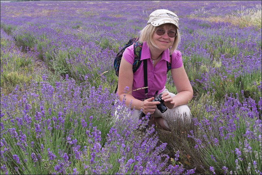 В тот день мы решили побывать на цветущем лавандовом поле. Самое известное и популярное находится около посёлка Тургеневка. А добраться туда можно на электричке — платформа 1501 км. По пути мы застряли на поле, где ещё недавно было целое море маков — нам там остались последние осыпающие цветы. Но если бы не надвигающийся дождь, мы бы ещё долго азартно снимали маковые портреты. Но небо над пшеничным полем окрасилось в пасмурные, очень контрастные цвета. Белая пелена висела над горами, сливая небо и землю в одно туманное пятно. Это шёл по горам щедрый июньский ливень. Ветер пах свежестью и намокающей землёй. Он был такой славный, этот ветер, после жаркого южного солнца! Хотелось раскинуть руки и лететь в его потоках. И мы раскидывали руки навстречу ветру. Не летели, конечно, — просто шагали навстречу тучам. Мимо жёлтых и зелёных полей, мимо растущих длинными — до горизонта — грядками розовых кустов. Впереди неправдоподобно-сиреневым лоскутом светилось лавандовое поле… Лаванды был