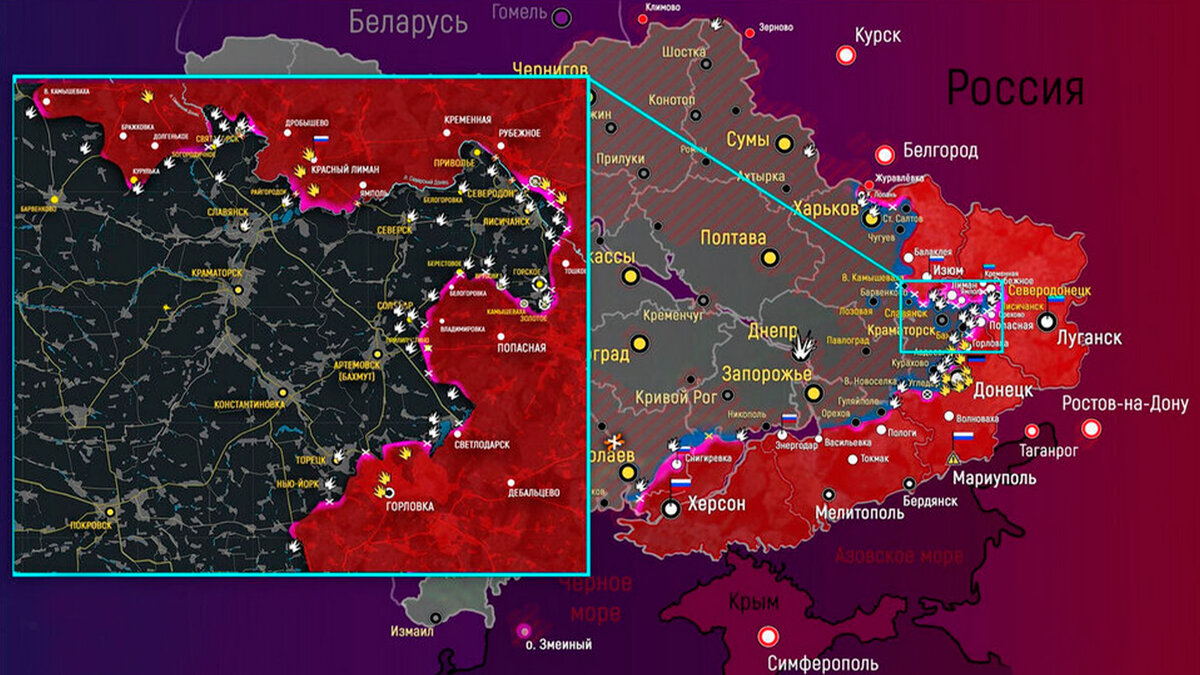 Сегодня с самого раннего утра активно работает наша артиллерия, поддерживая наступающие части российской армии. Мы наступаем с севера в направлении Славянска, до которого остается меньше 20 км. Подразделения ВС РФ вышли к окраинам н.п Богородичное, наносится огневое поражение по противнику, обороняющему н.п. Краснополье и Долина. Группы российского спецназа продолжают зачищать большой лес севернее Краснополья, из которого противник получал подкрепление и куда уходил в случае жёстких обстрелов. В лесах идет стрелковый бои и минная война, по укрепрайонам в населённых пунктах ( где зачастую каждый дом с подвалом, это огневая точка) наносится огневое поражение силами артиллерии и танков. Контратаковать ВСУ практически не пытается, отвечают артой и минометами, правда огонь достаточно плотный. Судя по всему несмотря на численное превосходство, украинская оборона скоро коллапсирует. Вчера российскими войсками был взят Святогорск, сегодня северная группировка ВС РФ выбивают противника и