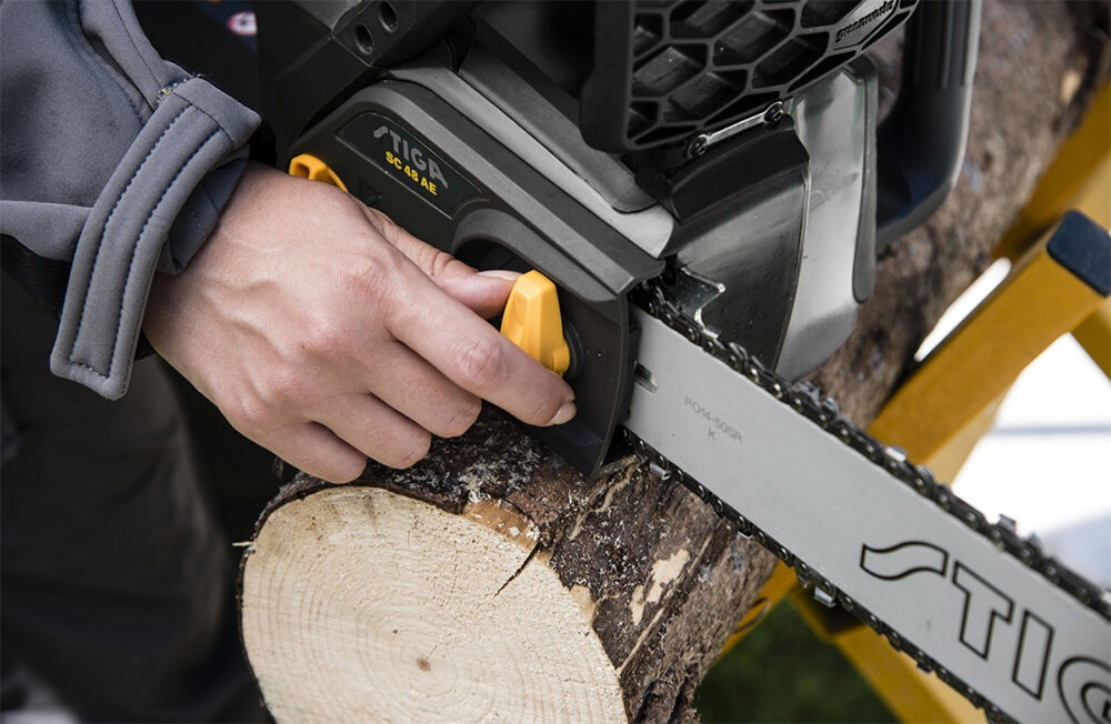 Если вам нужно пилить дрова, заниматься обрезкой деревьев, расчисткой участка, и вы хотите делать это легко и эффективно, бензопила станет незаменимым помощником и предметом вашей гордости, доставляя безусловное эстетическое наслаждение. Итак, вы выбрали великолепный инструмент, завоевавший любовь миллионов благодаря надёжности, высочайшему качеству элементов, вниманию производителя к деталям и безупречному итальянскому дизайну. Теперь мы хотим поговорить с вами о правильном уходе за бензопилой STIGA и её безопасной эксплуатации. Это позволит продлить срок её службы, повысить эффективность вашей работы, и доставит вам много положительных эмоций. Правильная настройка сделает использование этого инструмента менее утомительным, так как пила будет работать с оптимальной производительностью, задействуя абсолютно все возможности своего мощного двигателя. Правило № 1 Каждый раз, беря в руки бензопилу, мы должны проверить натяжение цепи. Цепь хорошо натянута, когда мы можем легко сдвинуть её