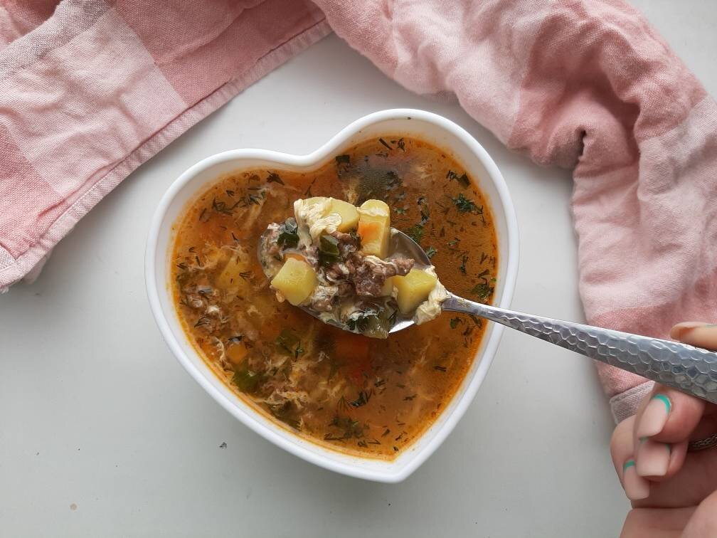 #суп #первоеблюдо #супфаршем #быстрыйсуп Ингредиенты: Вода, Фарш , Картошка, Морковь, Лук, Яйцо сырое, Соль, специи , Зелень Способ приготовления: Картошку нарезать кубиками, залить водой и довести до кипения. В это время обжарить фарш и добавить к картофелю. Лук и морковь порезать кубиками, обжарить и добавить зажарку в суп. Довести до вкуса с помощью соли и специй. Варить до готовности картофеля. В конце добавить мелко порезанную зелень и взбитое яичко, быстро перемешать, чтобы получились яичные растрепки.