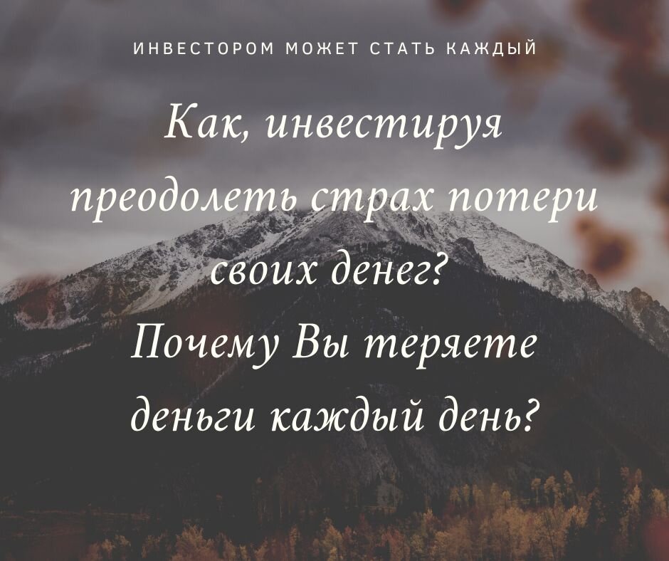 Большинство людей, которые сохраняют свои деньги без инвестиций теряют свои деньги из-за инфляции, сохраняя их в банке. Важно осознавать, что при потере стоимости денег в периоде 10 лет и больше, у вас как правило отсутствует страх этой самой потери.
