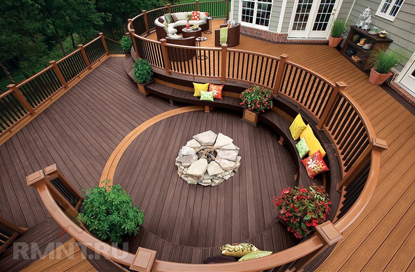 Древесно-полимерный композит используется в ландшафтном дизайне сада.