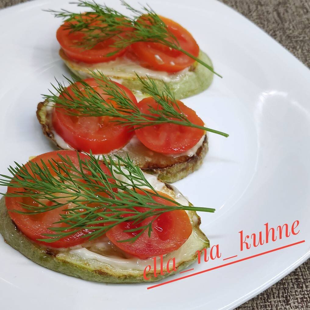 Первый раз в этом году делаю эту всеми любимую закуску. #традиции #Воронеж Ингредиенты: Кабачок, Помидор, Майонез, Укроп, Чеснок , Соль, Растительное масло для жарки Способ приготовления: В этот раз я решила нарезать кабачок не кружкáми, а овально. Обжарить с двух сторон на растительном масле. Когда перевернули - присолить. Можно перед обжаркой обвалять в муке. Каждый кусочек кабачка смазать майонезом (можно добавить чеснок, но у меня его не было). Сверху выложить кружочки помидоров и веточку укропа. Приятного аппетита😍! Если вам по душе мои незатейливые рецепты: подписывайтесь и оставляйте свои фотоотзывы📸!