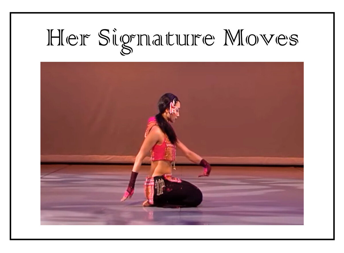 Посмотрите, например, говорил этот брат, на танцовщицу Аназму. Ведь это её фирменный стиль, это её фирменные волны. Они являются неотъемлемой частью её стиля, её презентации на сцене. Они делают её узнаваемый …