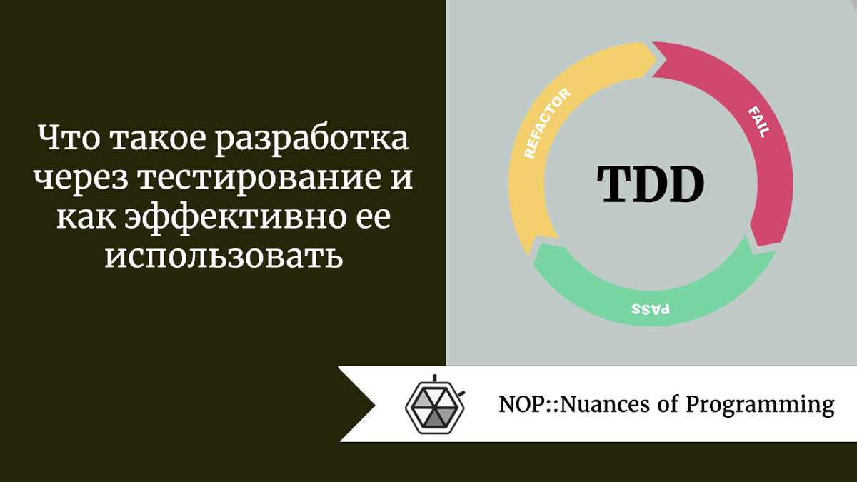 Источник: Nuances of Programming Что такое TDD TDD — это аббревиатура от test-driven development (разработка через тестирование). Она широко известна в IT-индустрии благодаря книге Кента Бека по программной инженерии “Экстремальное программирование”. В этом бестселлере представлен новый метод разработки программного обеспечения — экстремальное программирование. Смысл названия “экстремальное программирование” кроется в главной идее этого метода — доведении обычной практики программирования до предела совершенства. Поэтому TDD — один из наиболее часто рекомендуемых методов. На приведенном ниже изображении представлена классическая модель TDD: Модель TDD отражает три этапа этого метода. Считается, что разработка через тестирование заключается в том, чтобы начать с создания тестов, а лишь затем переходить к написанию кода. Это неправильное понимание. Сперва тест, потом код — это скорее Test-First Development (предварительная разработка тестов), а не Test-Driven Development (разра