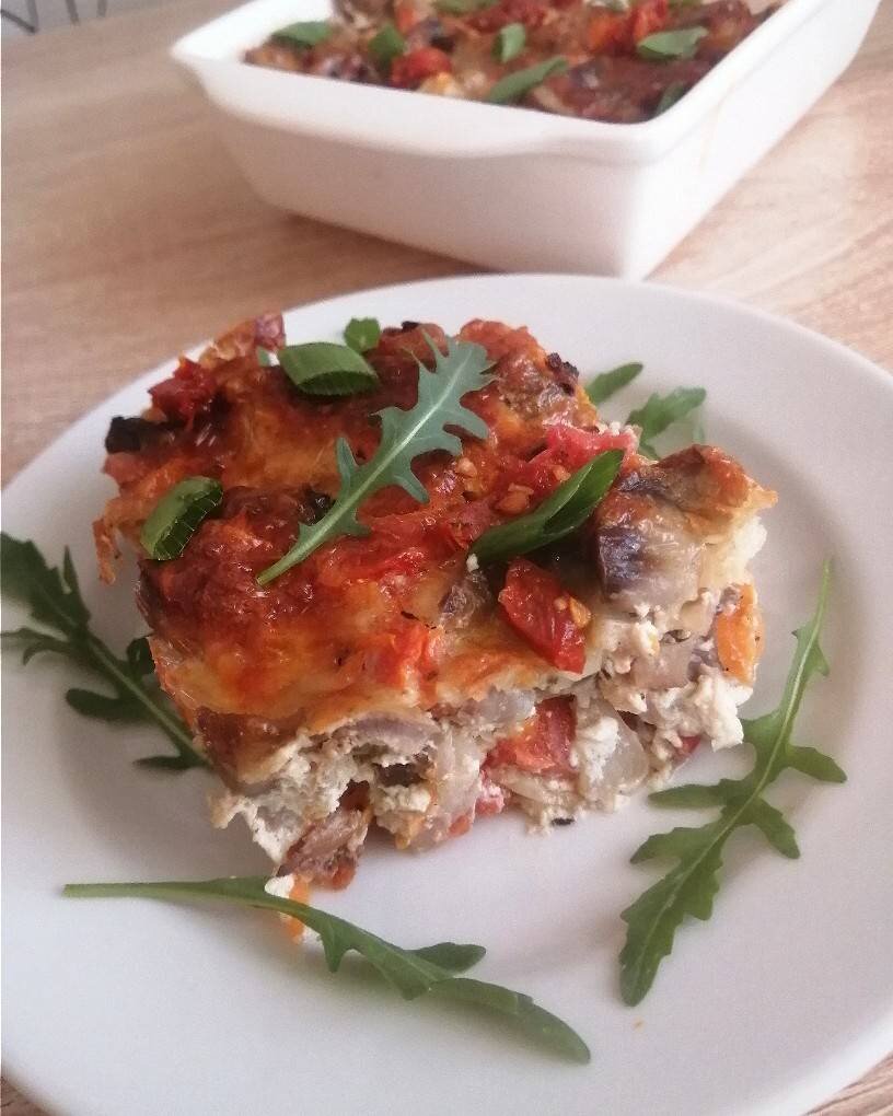 Запеканка из желудков куриных с шампиньонами и овощами