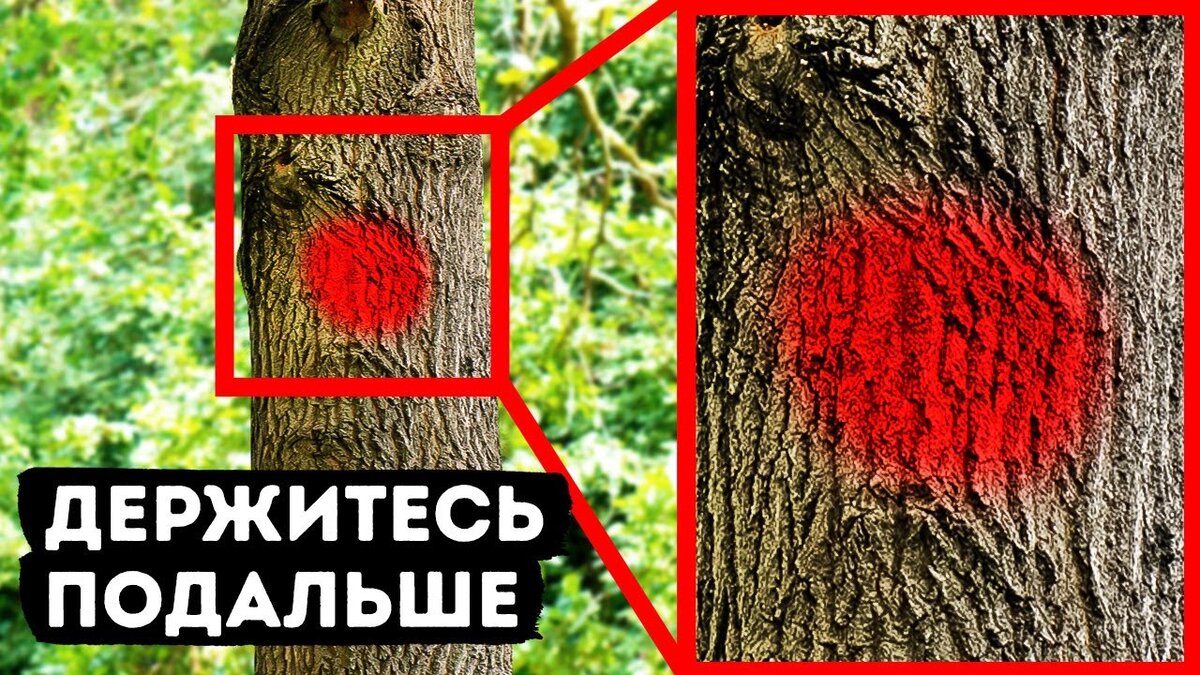 границу лесных владений. Универсальных правил насчет цвета или формы меток нет, но обычно в лесу деревья под вырубку обозначают синими линиями. А те что нужно сохранить, оранжевыми или желтыми. В черте города деревья для вырубки чаще всего помечают красными, оранжевыми или желтыми линиями, или точками. Если заметите такую маркировку на дереве рядом с которым паркуете автомобиль, лучше переставить его в другое место, чтобы ствол и ветки при спиливании не повредили машину. Деревья в лесу могут отмечать для сохранения, потому что в них есть подходящие дупла для животных и птиц, или на ветвях имеются гнезда. Часто