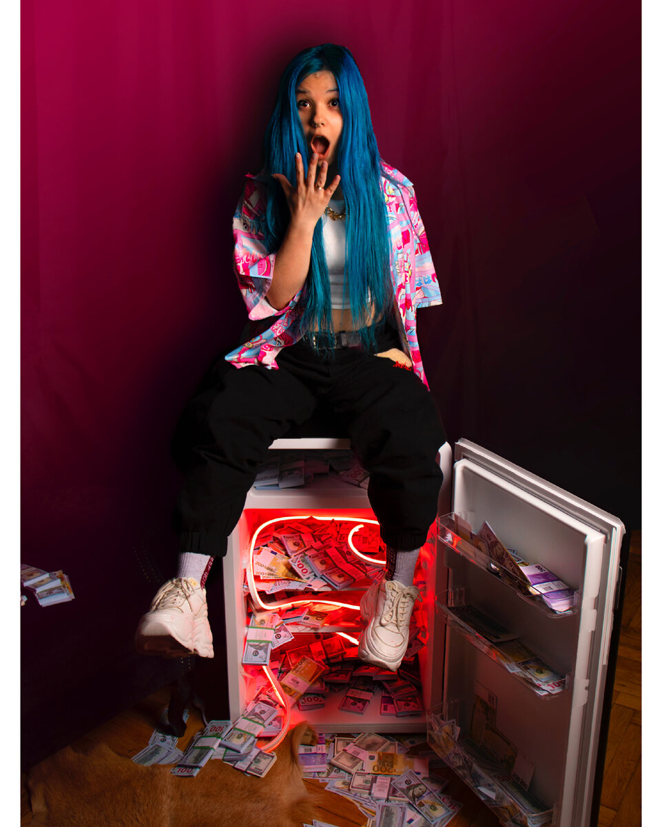Подписчики полюбили исполнителя за позитив и яркий образ.Тело девушки украшено татуировками а волосы имеют яркий синий цвет. На данный момент у КАНИМЫ аудитория 1.8 миллиона