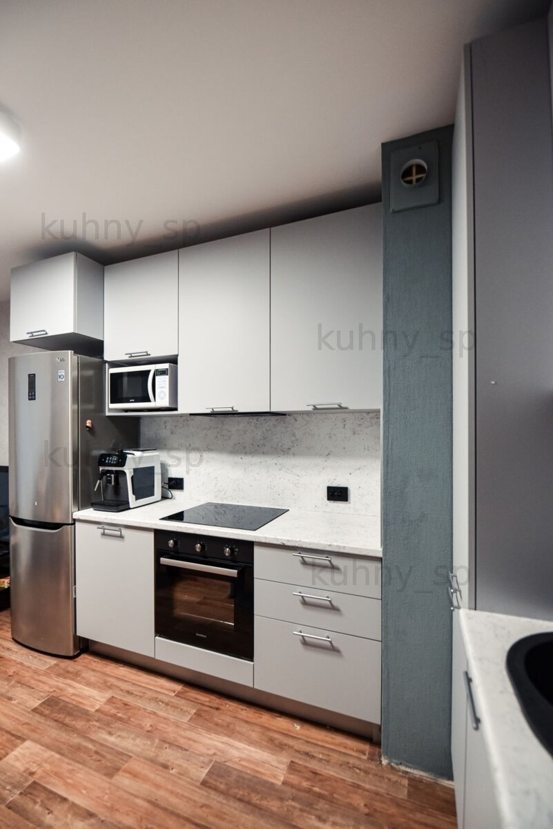 Серый гарнитур с фасадами из МДФ в пленке| Кухня на заказ по индивидуальному проекту