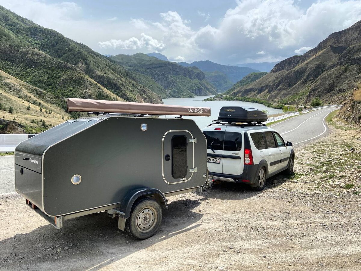 Можно ли путешествовать с прицепом-каплей по Дагестану? Задавались мы вопросом перед поездкой. Никаких обзоров на просторах интернета до нашего путешествия мы не нашли, в основном все едут просто на машинах, либо на автодомах, либо на бусиках. И вот решили мы испытать нашу Ладу на прочность. Сравнивая горные дороги Дагестана с Крымом, подумали, что Крым- это цветочки) Наша Ладушка стойко преодолевала препятствия, бывало правда иногда рычала, поднимаясь на горку на второй и первой скорости, бывало местами пробуксовывала, где был гравий на дороге, ну а в общем и целом вела себя отлично. Бывали моменты, когда чувствуешь себя пилотом шатла, поднимающегося вверх к небу 🙂🙂🙂, а ведь сзади ещё и прицеп, с которым надо подняться в горку и спуститься с другой, ещё более крутой) Самое сложное в дорогах для нас были подъемы и спуски, машина с прицепом были загружены и чувствовался дефицит мощности, а ещё обязательно перед поездкой нужно проверить тормозную систему, у многих горят колодк
