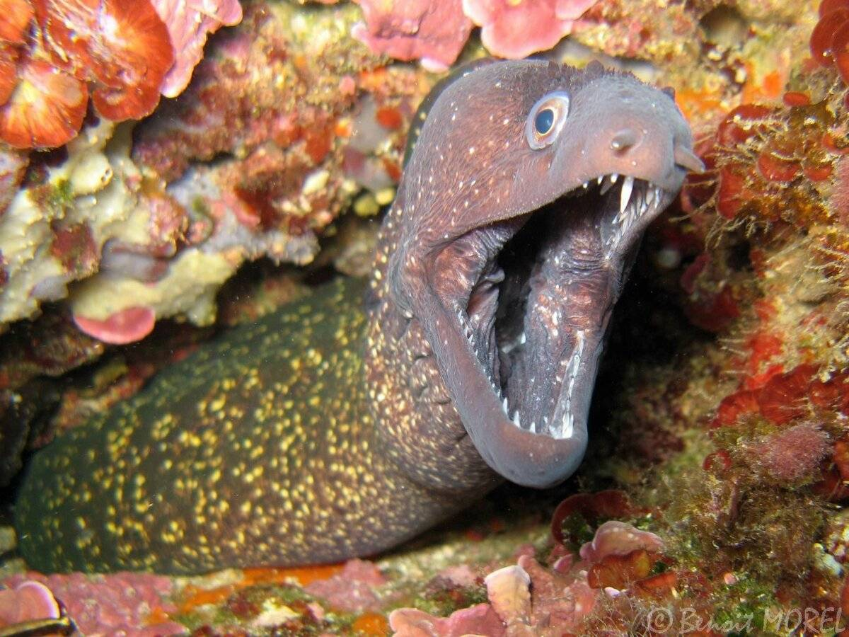 Сегодня мы расскажем о муренах, а также узнаем на что они способны в схватке с другими морскими обитателями. Мурены относятся к семейству угрей и широко известны своей необычной внешностью и агрессивным поведением. По своей природе они являются хищниками и имеют много схожих черт со змеями, например, обладая мощным телом, позволяющим не только удобно передвигаться в воде, но и прятаться в узких норах и расщелинах скал. Их внешний вид нагоняет страх - огромная пасть, крошечные глаза, слегка приплюснутое тело. Хотя мурены чем-то напоминают змей, их совсем нельзя назвать друзьями. Особи могут достигать до 3-х метров в длину и веса до 30-ти килограмм, но даже такие крупные мурены предпочитают избегать открытой воды и обычно прячутся в укрытиях на глубине не более 50 метров. Тело, покрытое слизью, обеспечивает легкое проникновение в пещеры и другие естественные укрытия, также помогает защитить их от механических повреждений и водяных паразитов. Голова и вся верхняя часть тела имеют желто-к