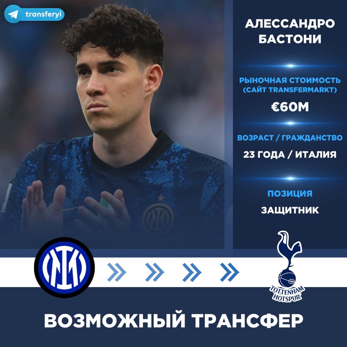 Журналист Дхармеш Шет: Защитник «Интера» Алессандро Бастони может перейти в «Тоттенхэм».