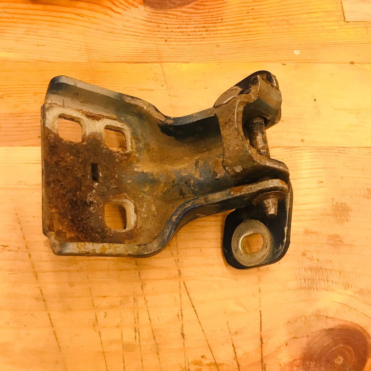 Добрый день. Сегодня расскажу, как мы с Михалычем ремонтировали двери на его бегемоте - Додж Гранд Караван. Михалыч недавно приобрёл себе это чудо вражеской техники. Машина хорошая, большая, довольно бодрая, но немного старенькая 2001 года. Из-за это есть у неё небольшая усталость. Одна из печалек - разболтанные петли водительской двери. Провис двери был настолько большой, что приходилось при закрытии её приподнимать, потому что иначе замок не попадал в свою петлю. Виновник быстро был найден - нижняя дверная петля. Михалыч отправился в гараж, снял петлю и принёс её ко мне. Петля состоит из двух половинок, которые скреплены между собой пальцем. Палец подразбил свои посадочные места и чудовищно люфтил. Когда мы выбили палец из петли, оказалось что в одной из половинок отверстия под палец больше необходимого (и видимо это заводская задумка), и там стояли втулки, от которых осталась одна фольга! Не знаю, ремонтировалось это или нет, скорее нет - на пальце следы заводской краски в цвет куз