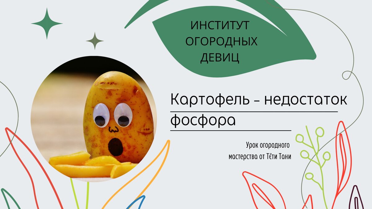 Здравствуйте, уважаемые читатели канала ИНСТИТУТ ОГОРОДНЫХ ДЕВИЦ! Продолжая обширную тему, открытую в наших предыдущих публикациях, сегодня мы поговорим о недостатке фосфора в почве на которой растёт картофель, а также о том, как этот недостаток на картофель влияет. Задам вопрос, а есть ли у вас на участке недостаток фосфора? Мне думается, что в вашей почве скорее избыток этого элемента… И вот почему. При посадке картофеля, не взирая ни на какие правила и рекомендации, наши садоводы и огородники стремятся добавить в лунку с семенным клубнем “всего и побольше”. Здесь и перегной, и суперфосфат, и луковая шелуха, и яичная скорлупа, и всё это горстями. А после всех этих “даров”, пространные размышления на тему: “Что бы ещё такого туда ему положить, чтобы уж наверняка!”. Помните, что суперфосфат заработает не в первый год, сразу после внесения, а во второй, или даже в третий. Вносить, конечно же, можно (а при недостатке и нужно), но, только под перепашку, и уж конечно не в процессе посадки