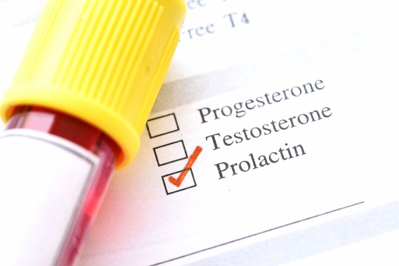 При появлении подозрительных симптомов (набухание, увеличение размера груди, появление выделений), необходимо сдать анализ крови на пролактин.