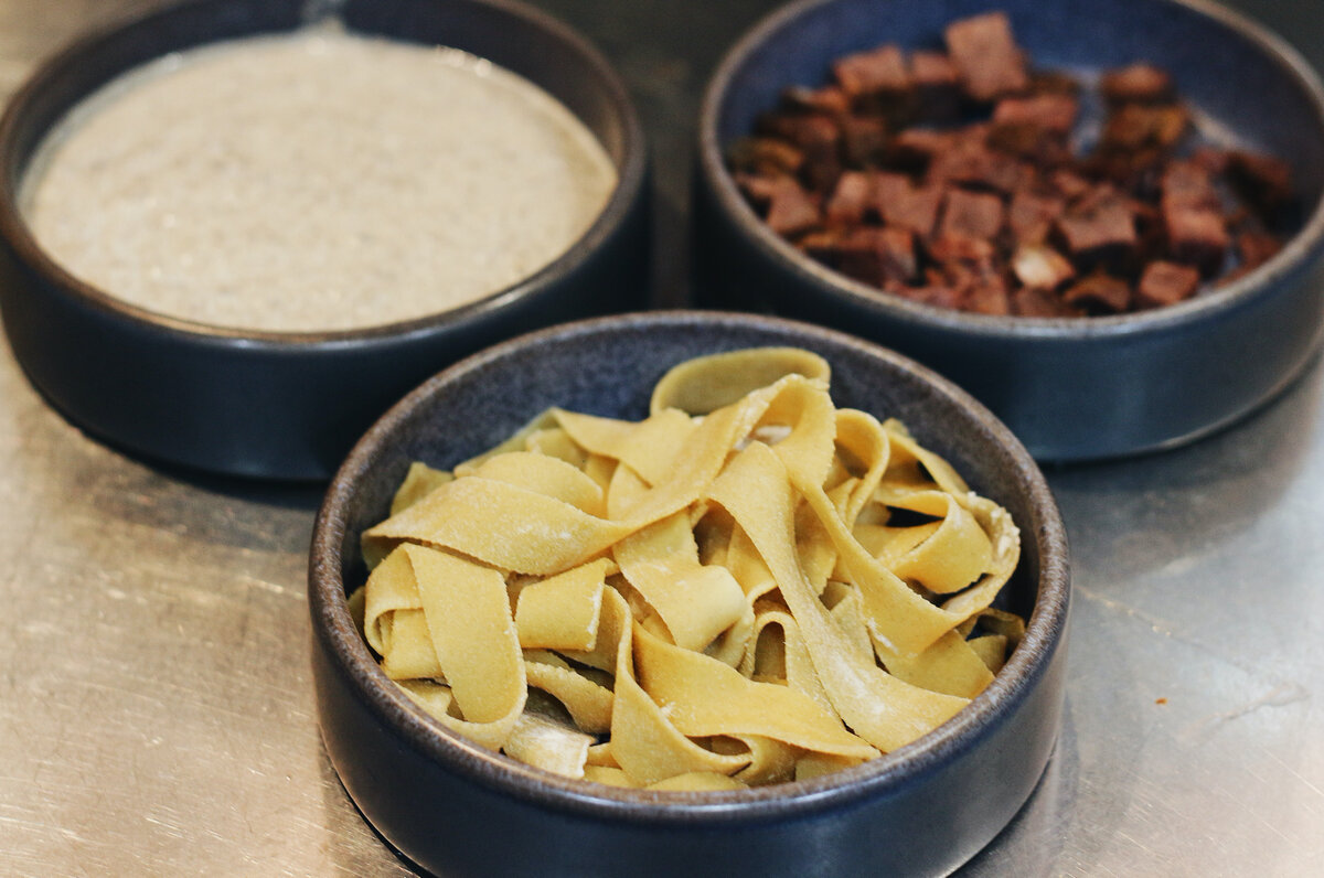 Папарделле с телячьими щечками и соусом из лесных грибов