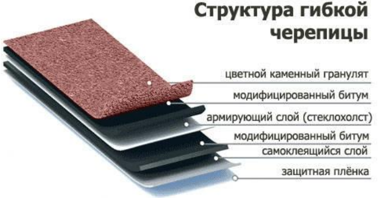 Мягкая черепица состоит из таких слоев: