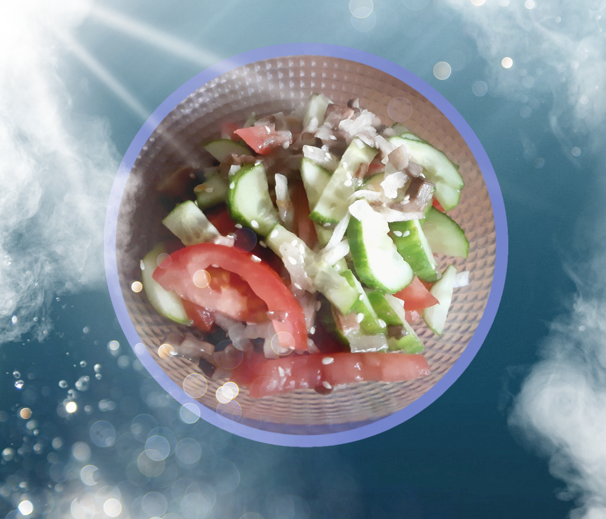 Салат из огурцов и помидоров с жареными грибами