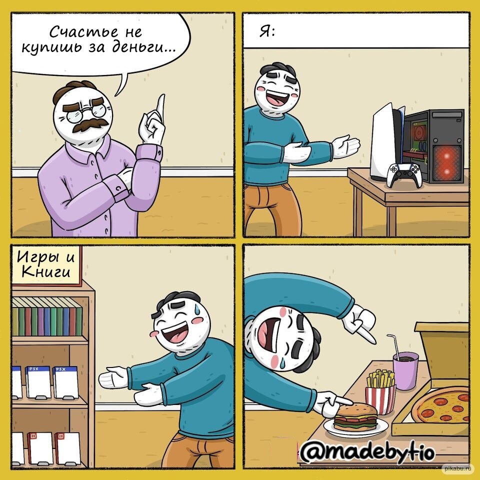 Привет, дорогой друг! Мне очень хочется, чтобы #комиксы максимально поднимали тебе настроение, поэтому я стараюсь брать самые актуальные темы. Например, сегодня я собрал подборку, которая посвящена деньгам. Думаю, #юмор в этих комиксах сможет заставить тебя улыбнуться даже если ты чувствуешь, что деньги — это не самый большой твой успех. Все мы прекрасно знаем, что вовсе не в деньгах счастье, ведь такие важные вещи как любовь, дружба или верность нельзя приобрести даже за кругленькую сумму. Однако, и преуменьшать значение денег тоже не стоит, ведь они могут добавить в нашу жизнь множество прекрасных вещей, например, как в комиксе от Madebytio. Наверняка каждый хоть раз в жизни был тем человеком, которому не вернули долг. Оказавшись в подобной ситуации, люди ведут себя по-разному. Например, кто-то легко смиряется с потерей денег, а кто-то постоянно напоминает о себе как в комиксе от Павла Пако. Согласно средневековым английским балладам в Шервудском лесу несколько веков назад можно было