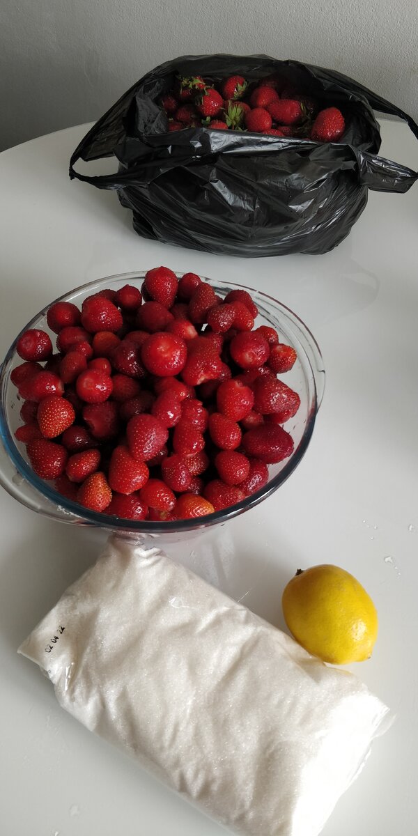 Сезонная ягода сейчас в "самом разгаре". Нужно ловить момент и немного запастись впрок. Например, сделать вкусный джем. Тем более цена на клубнику минимальная. В Кисловодске ее продают от 120 рублей за килограмм. На 2 килограмма клубники нам понадобится 1 лимон и всего 400 граммов сахара. Режем клубнику кусочками, как нравится. Я люблю чувствовать кусочки в ложке, поэтому режу покрупнее, мелкую ягоду и вовсе кладу целиком. Засыпаю клубнику сахаром и выдавливаю сок из лимона. Оставляю кастрюлю на час, чтобы клубника дала сок и сахар растаял. Через час включаю плиту и варю клубнику на сильном огне постоянно помешивая. Пенку не снимаю. Через 25-30 минут масса загустеет. Выключаю и даю остыть джему минут 10. Разливаю содержимое кастрюли в стерилизованные банки и храню в холодильнике. Джем получается густой и сладкий, хоть и сахара в нем всего 400 граммов.