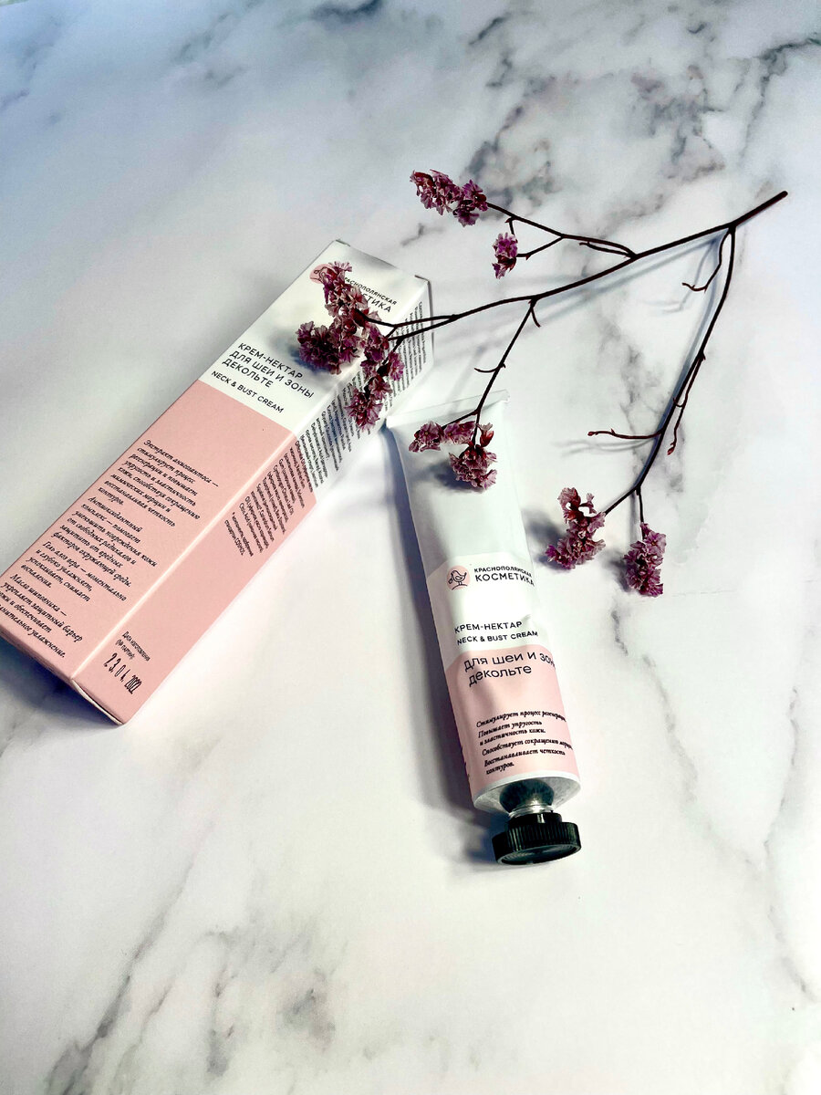 Коже на шее, как привило, уделяется не столько внимания, чем лицу, а зря! В этой зоне очень малое количество сальных желёз, да ещё и слабая поддержка со стороны мышечного каркаса и вдобавок ко всему она довольна уязвима для ультрафиолета! А всего-то нужно очищать ее вместе с кожей лица и наносить немного крема для увлажнения перед сном, а перед выходом на улицу - продуктом с SPF от солнца. Сейчас огромное изобилие уходовой косметики и в том числе разработаны специальные кремы для шеи и области декольте, об одном из которых я вам сейчас расскажу. Я впервые приобрела продукт именно для такой деликатной зоны, как шея и поняла в чем разница от обычного крема для лица. А разница в просто несравненно великолепном увлажнении! Честно, у меня еще никогда не было такой нежной кожи на шее! Безусловно, за несколько применений глубокие статичные складочки не разгладить, но вернуть здоровый, упругий и подтянутый вид кожи вполне реально! Консистенция данного крема от «Краснополянская косметика» боль