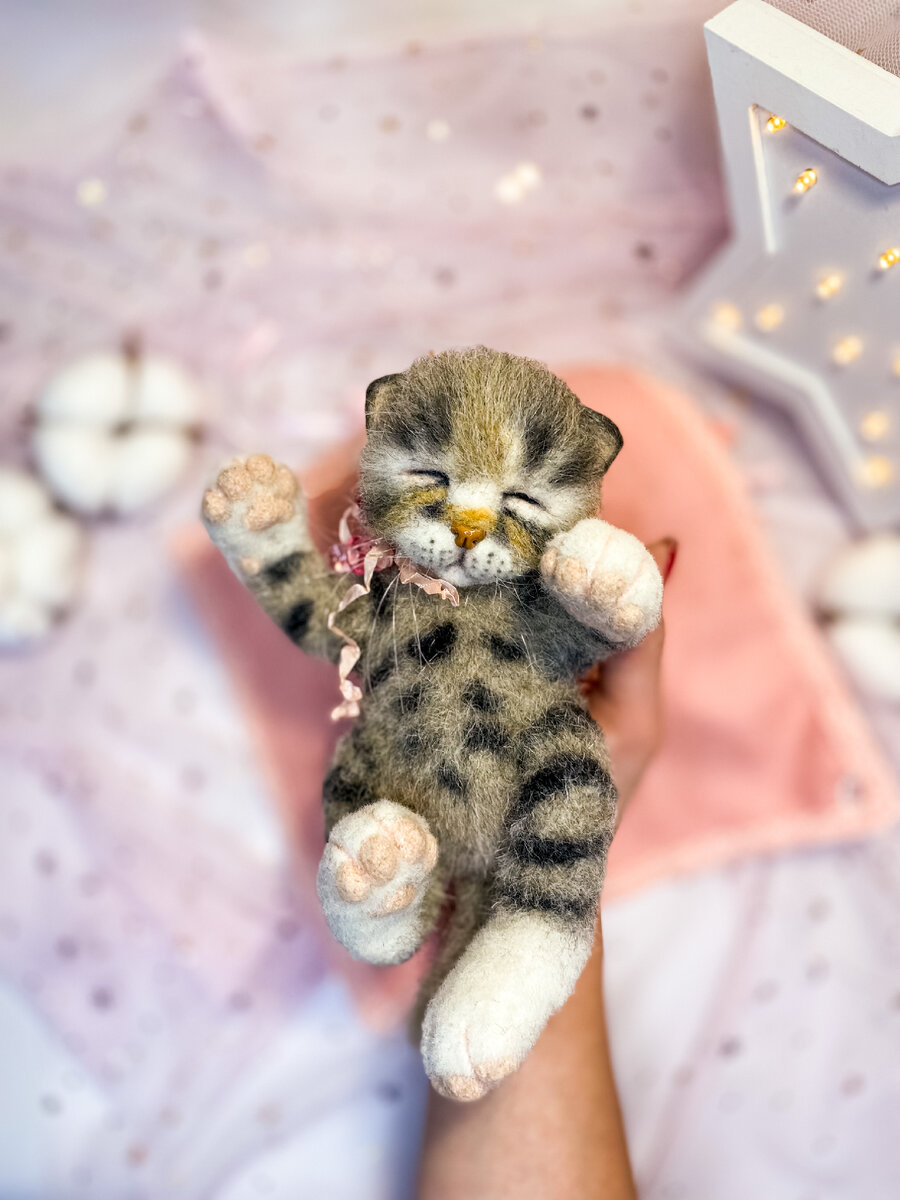 Доброго времени суток, мои дорогие! Вчера закончила делать заказ, спешу поделиться с вами результатом. Котёнок по имени «Пятнышка»❤️💛💜 У малыша лапки сгибаются, поэтому можно положить его в ладошку или рядом с собой в любой позе. Сшила ей трикотажный конвертик с кружевной каёмочкой. Вот такая славная девчушка получилась. Малышку отправила уже к будущей хозяйке🥰 Если вам понравился котёнок, буду рада вашим добрым комментариям, сердечкам!