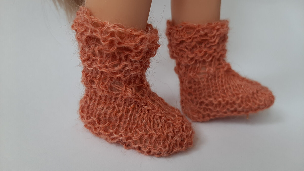 Спицы 1мм. Пряжа 1600м /100гр Краевые петли входят в счёт петель раппорта. 2вм из.* - 2ю и 2ю петли поменять местами и провязать их 2вм из. Набрать 32 петли. Вязать поворотными рядами. 1-6 р - лицевая вязка ( можно 8р) 7р- 13л, 2вмл, 2л, 2вм ( за нижнюю нить),13л 8р- 12из, 2 вм из.*, 2из, 2вм из, 12из 9р- 11л, 2вмл, 2л, 2вм, 11л 10р- 10 из, 2вм из.*, 2из, 2вм из, 10 из 11р- 9л, 2вмл, 2 л, 2вм, 9л 12р- 8 из, 2вм из.*, 2 из, 2 вм из, 8 из 13 р-7 л, 2вмл, 2л, 2вм, 7л 14р- 6 из, 2 вм из.*, 2 из,2 вм из, 6 из 15 р- ( н, 2вм) весь ряд 16р- изн. 17р- лиц. 18р- изн. 19 р- лиц. 20-23р- лиц. 24р - изн. 25р - лиц. 26 р- (н, 2 вм из.) 27-30р - лиц. 31р - закрыть все петли изнаночным приёмом. Ботиночек сшить. Спасибо за внимание!