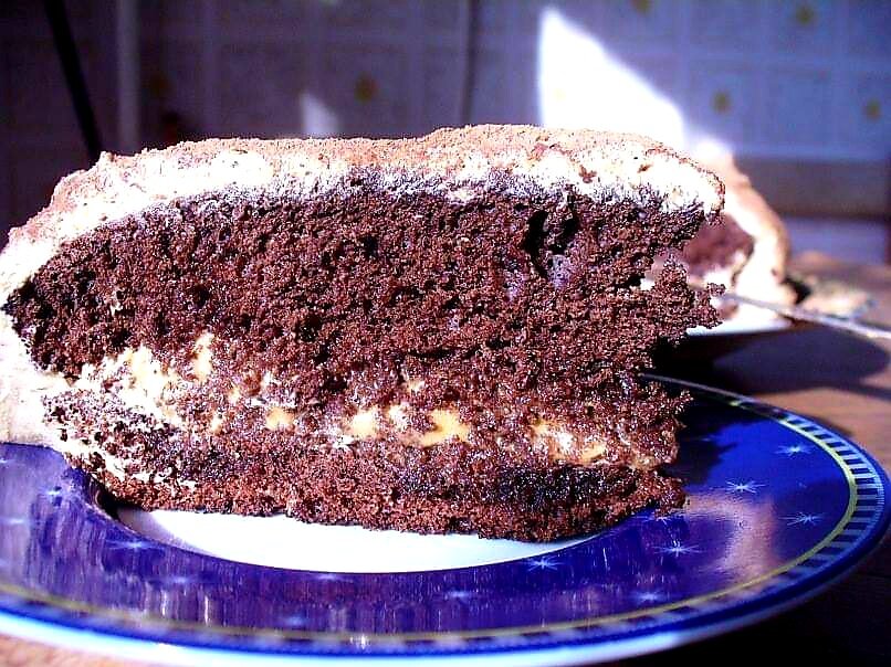 Из старых, проверенных временем рецептов - торт " Полярная ночь". Рецепт адаптирован для домашнего применения, так как мне его надиктовали в 1988 году, кондитеры кафе " Фрегат". Новоземельцы, привет!) Торт "полярная ночь" готовили в кондитерском цеху кафе "Фрегат", в гарнизоне, на Новой Земле. У меня торт круглый, а по рецептуре он должен быть прямоугольный и обсыпан крошкой темного бисквита, перемешанного с тертым шоколадом. Готовить его быстро, а еще он очень вкусный! Бисквит - 5 охлажденных яиц взбить со щепоткой соли, продолжая взбивать, добавить стакан сахара. В полученную массу постепенно добавлять - стакан муки, разрыхлитель ( маленький пакетик), ваниль и какао - порошок. Всё время взбивать. Какао надо много - 3 столовые ложки с верхом, и хорошего качества. Я беру "золотой ярлык". Выпечь бисквит. Готовый бисквит остудить, разрезать, пропитать сиропом, намазать кремом и дать постоять хотя бы три часа. Сироп - сахар и воду уварить и добавить коньяк. Коньяка беру много,