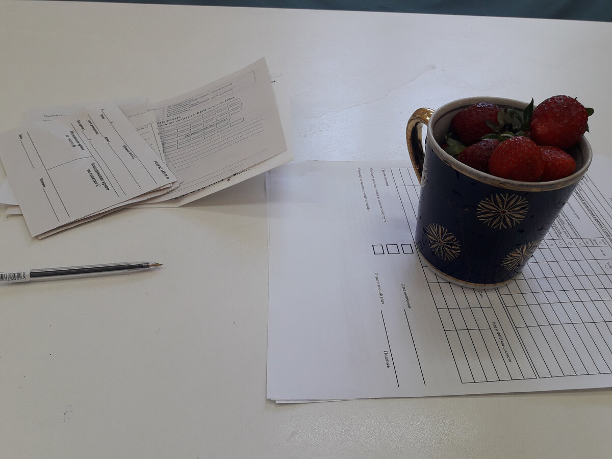 Привет друзья! У нас на работе аврал, ремонт начался. Ремонт в нашей поликлинике будет капитальный. Менять будут и окна и батареи. Сегодня я полдня носила документы из своего кабинета в хранилище. Потом перекусила клубникой, которую купил в по дороге на работу. Клубника потихоньку дешевеет. Уже менее 300 рублей за кг стоит . Скоро поедем на дачу , ура.