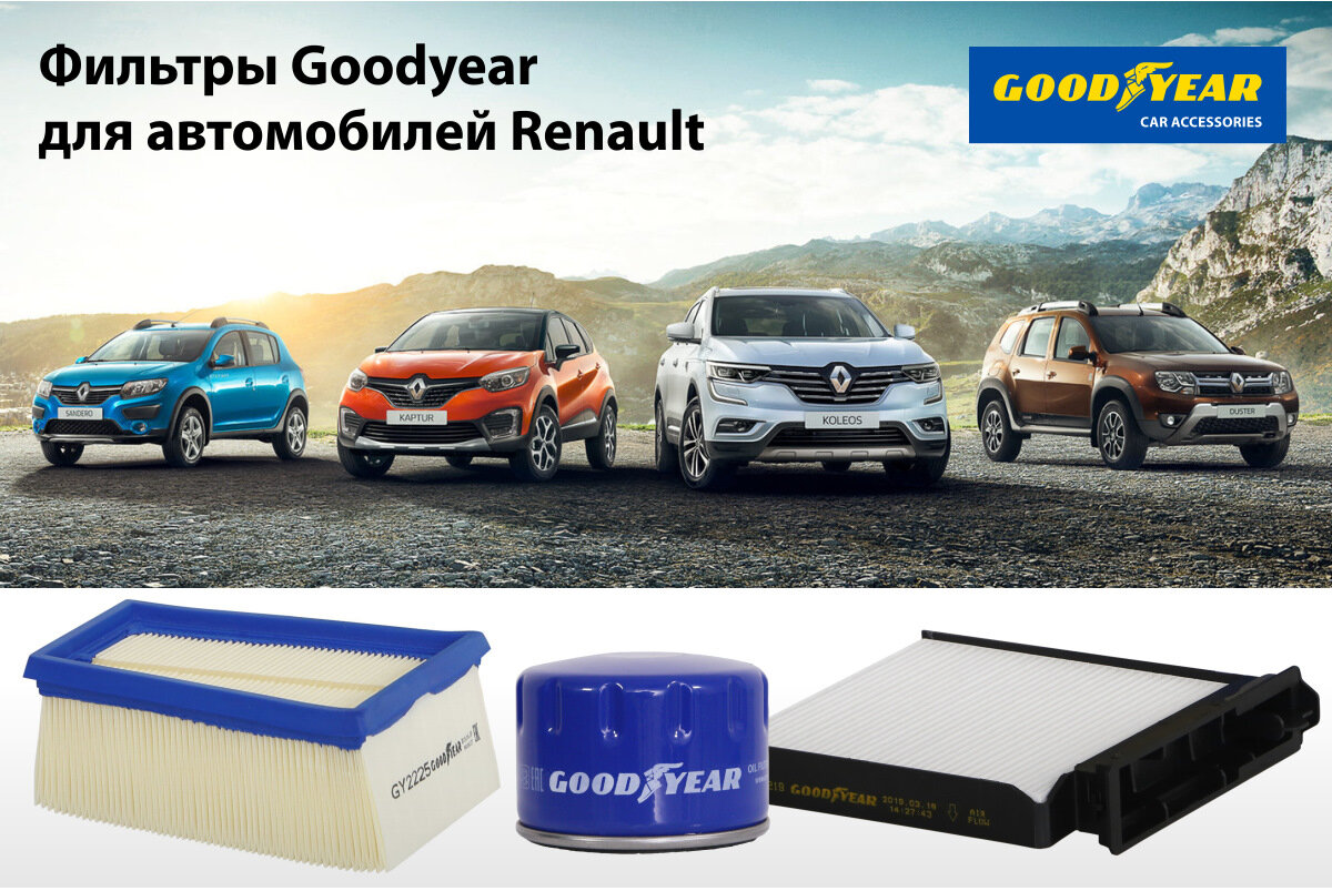 Чтобы помочь водителям с подбором расходников на их автомобили, мы продолжаем составлять шпаргалки с применимостью фильтров. На этот раз посвятим наш гайд автомобилям Renault. Масляные фильтры Их основной компонент – это фильтрующий элемент, который изготавливают из специальной бумаги. Для масляных фильтров Goodyear используют качественный фильтровальный материал Ahlstrom (Финляндия). Смело берите фильтр Goodyear GY1207, если у вас: Масляный фильтр Goodyear GY1209 подойдет для автомобилей: Воздушные фильтры Важно, чтобы они эффективно очищали воздух в любых условиях: были устойчивы к воздействию масла и топлива, не деформировались из-за влаги. Воздушные фильтры Goodyear также выполнены из финского материала Ahlstrom. Они сохраняют свою форму на всем сроке использования, отличаются высокой пылеемкостью и минимальным сопротивлением воздушному потоку. Не ошибутся, если возьмут фильтр Goodyear GY2104, водители машин: Фильтр воздушный Goodyear GY2110 подойдет для: Фильтр Goodyear GY2218 нуж