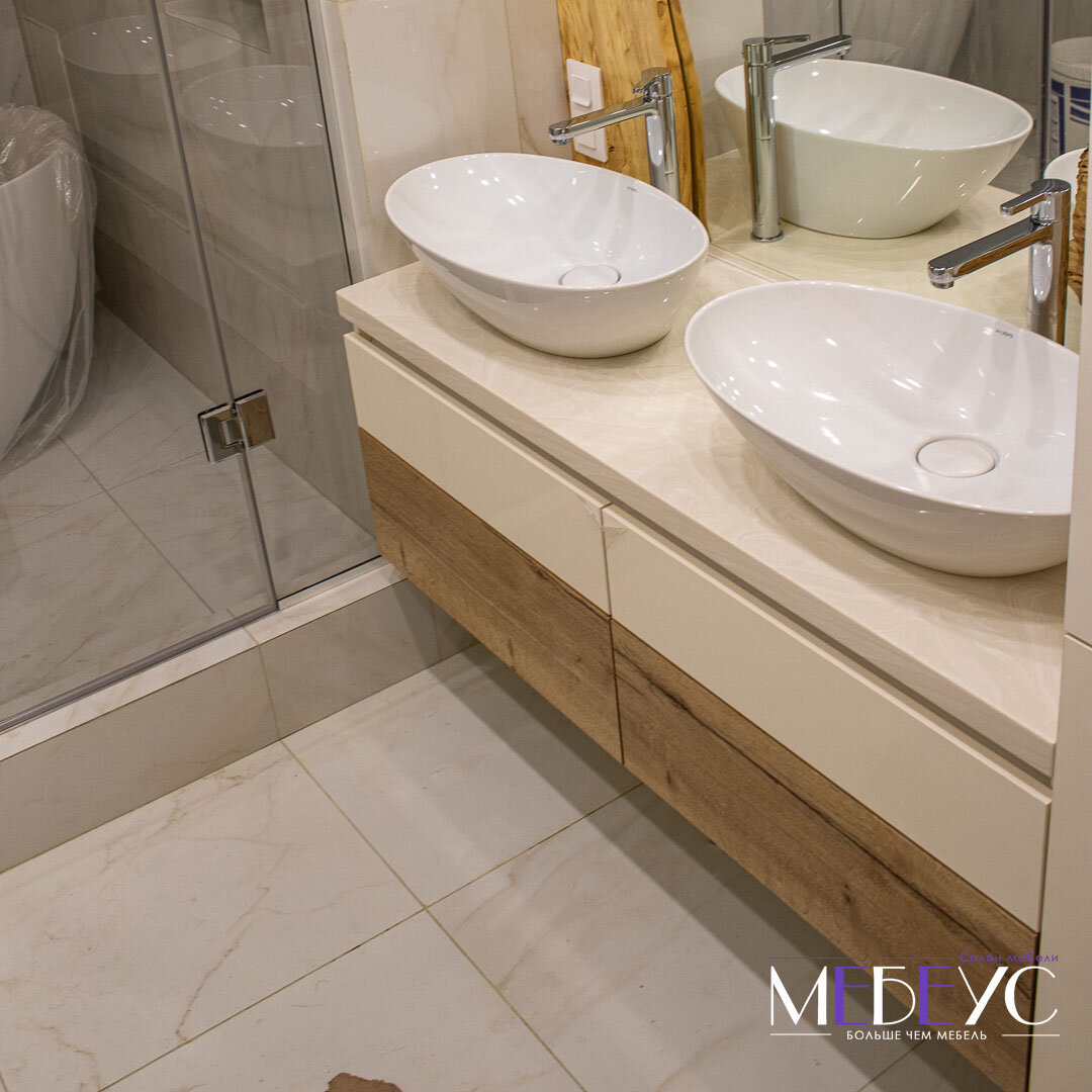 Как мы уместили на 2,2 метра тумбу на 2 раковины и стиральную машину в шкафу!