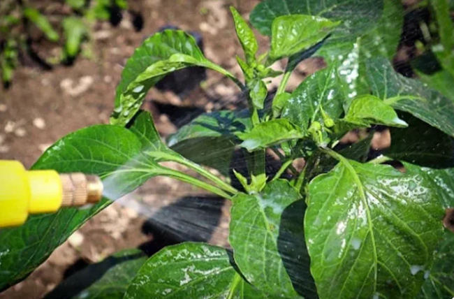 Использование удобрений на открытых участках имеет свои особенности. Правильное применение соединений окажет максимальное влияние на развитие растений и формирование плодов. Внекорневая подкормка перца в открытом грунте для богатого урожая Способствует скорейшему восполнению питательных веществ в перцах, выращенных в открытом грунте. Водные растворы наносятся на листья и стебли. Заметные результаты появляются в течение одного дня. Этот тип удобрения используется, если на улице довольно прохладно или почва заболочена. Он также эффективен на кислых почвах и во время цветения. Для стимулирования плодообразования следует приготовить водный раствор борной кислоты (2 г на 10 л) и опрыскать им листовые пластины. Вносите удобрения на открытом воздухе только рано утром (до восхода солнца) или поздно вечером. Несоблюдение этого требования приведет к образованию ожогов. В ветреную погоду внекорневую подкормку следует прекратить. Для молодых растений следует использовать слабый раствор удобрения,