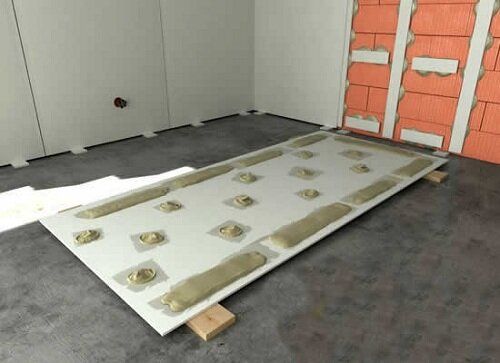 Клеевой монтаж листов ГКЛ часто приводят в качестве быстрой и простой альтернативы каркасному способу. Такая точка зрения обосновывается заблуждениями, которые мы разберем в этой статье. Клеевой монтаж можно производить без подготовки на любые стены Часто этот способ преподносят в качестве альтернативы штукатурным работам. Якобы с его помощью можно добиться выравнивания значительных перепадов без сложных работ и "мокрых" процессов. Все это достаточно условно и сильно зависит от понимания словосочетания "ровные стены". При небольших перепадах до 20 мм можно обойтись простым приклеиванием, а при неровностях от 20 до 40 мм необходимо выставлять маяки, как и при штукатурных работах. Выравнивать стены с перепадом более 40 мм нельзя без ущерба для качества - такие перекосы будет проблематично компенсировать при помощи клея и маяков. Остатки раствора и бетонные наплывы, выступающие от уровня стены, необходимо сбить. Вмятины и трещины следует замазать. В процессе монтажа используется гипсова