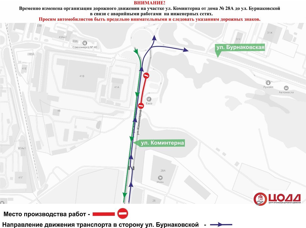 Часть улицы Коминтерна временно перекроют из-за аварийных работ