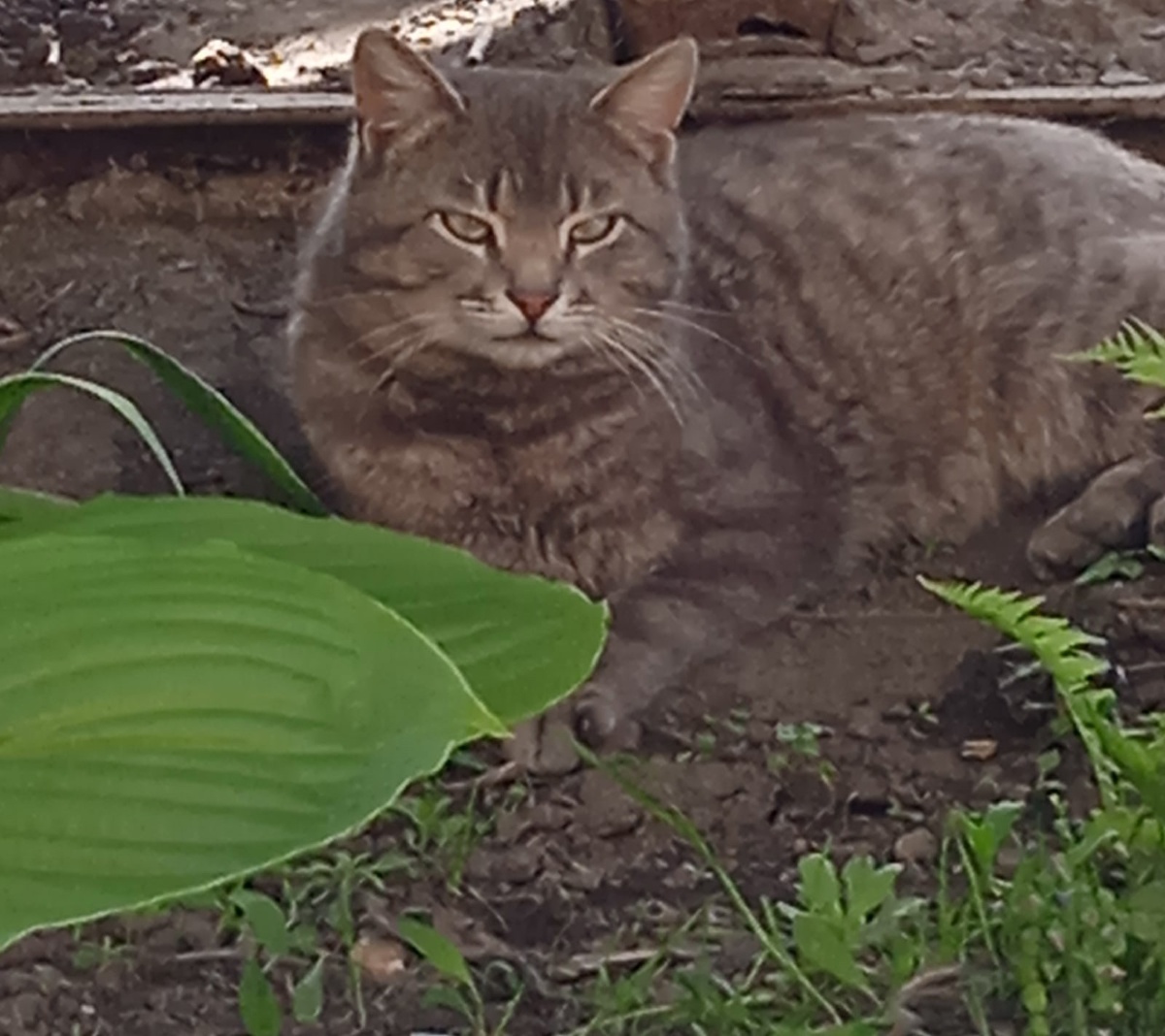 Серенький, он же Васенька, он же Братан (братик пропавшего Темочки) - один из подопечных с работы волонтера Елены Х. Хорошо в травке, на солнышке)) О, не простые времена...