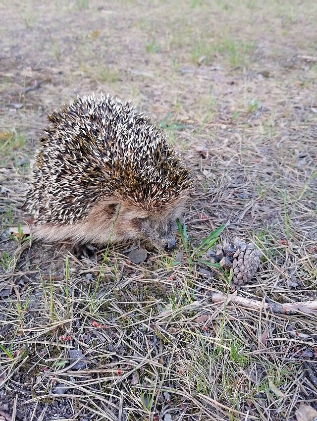 Удивило то, что еж нас не боялся и не скручивался в колючий клубок даже при наших прикосновениях к нему. А мы, вдоволь наигравшись с лесным гостем, оставили его в покое, пошли дальше.
