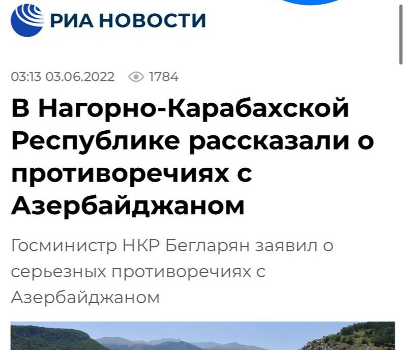 РИА Новости входит в медиагруппу "Россия сегодня", где верховодит Маргарита Симоньян (главред). Тем не менее, агентство никогда не отличалось приверженностью к какой-то из сторон по национальному признаку шефа. Но в мае, когда в Ереване начались протесты, что-то там произошло. Те кто следит за Марго должны помнить, что самой Симоньян, которая одно время в соцсетях высказывалась по армянской теме, последовал нагоняй из МИДа, после чего тема для нее стала табу. Видимо поэтому, для трансляции "нужных" мыслей, было выбрано РИА Новости — ресурс достаточно отстраненный от Маргариты,о чтобы не вызвать подозрений. Как бы то не было, но освещая события в Армении, РИА стало использовать несуществующие топонимы. Например, "Степанакерт" вместо "Ханкенди" ( до того, как поселение назвали в честь Шаумяна, оно так и называлось) или "Нагорно-Карабахская республика". Дальше — больше. Стали появляться интервью с сепаратистами. Появилось интервью с неким Мелкумяном, который был представлен, как депутат п