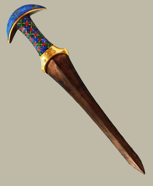 Кинжал имеет клинок финикийской формы, но узоры на рукояти были распространены на Крите. Ученые предполагают, что кинжал был привезен из Библоса в Финикии или с Крита, либо был изготовлен иностранным мастером при царском дворе в Египте.